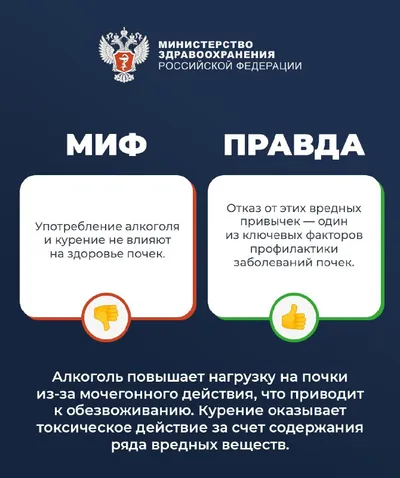 Минздрав России (VK) Мифы и правда о почках Главный внештатный уролог Минздрава России Дмитрий Пушкарь развеял домыслы об урологических заболеваниях. Распространенные мифы и реальные факты смотри