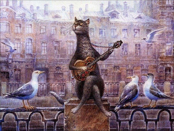 Вчера мой кот взглянул на календарь И хвост трубою поднял моментально, Потом подрал на лестницу как встарь, И завопил тепло и вакханально: "Весенний брак, гражданский брак - Спешите, кошки, на чердак!