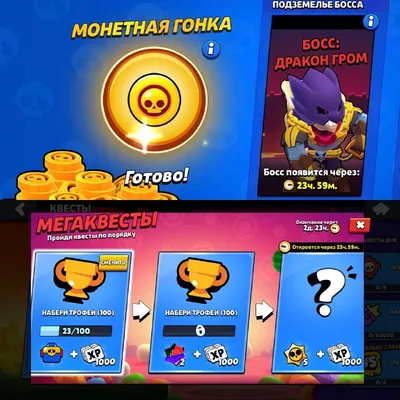 😄 Монетная гонка в игре В Brawl Stars появилась монетная гонка, получайте монеты за победы после активации. Также доступны новые мегаквесты на два хаосдропа и 15 кристаллов. А завтра в игре появит
