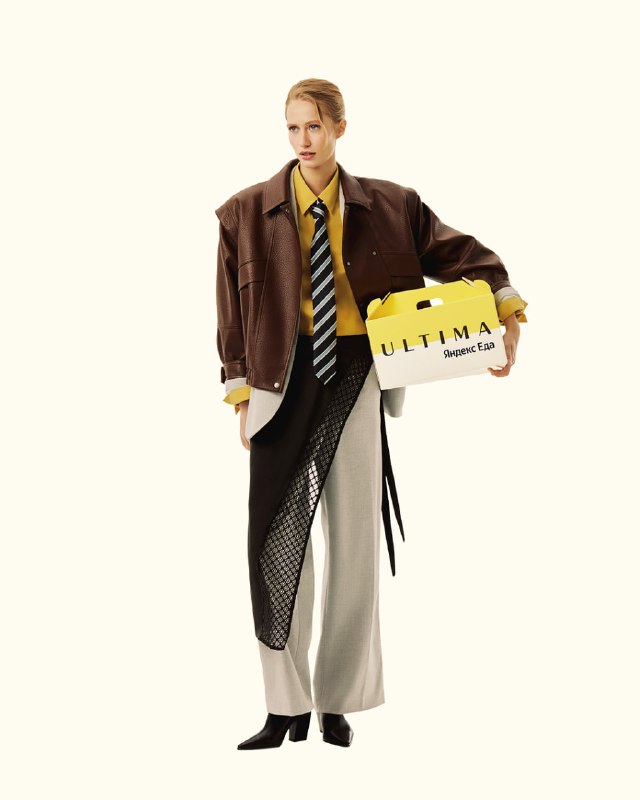 Один из самых модных манифестов этого марта — дизайнерский фартук от Ultima Яндекс Еда. Плотный атлас, кружево кроше, асимметричный крой. По форме — предмет гардероба для вечернего выхода. По смыслу