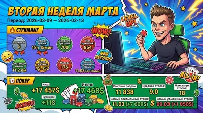 Ну шо, слегка переапавшись на раш200 (+800 плюс 420 лидербордами, по ев около нуля) таки оформил идеальную недельку. Дай бог, чтобы в графе отчёта за неделю "самый убыточный стрим" почаще появлялось п