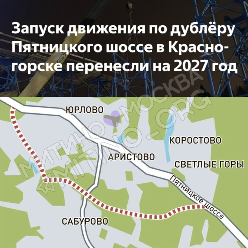 ❗️Открытие движения по дублеру Пятницкого шоссе перенесли на 2027 год (было конец 2026 года) ▪️Участок новой автодороги проходит от Пятницкого шоссе в районе поселка Отрадное до строящегося выезда из