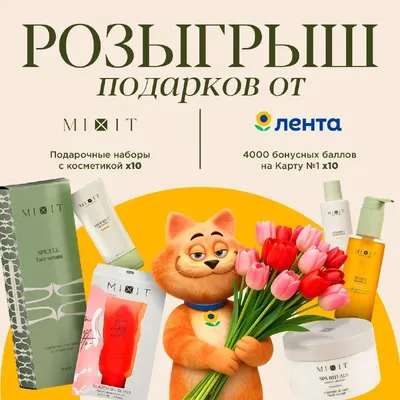 Дарим 40.000 баллов и 10 бьюти-боксов 😍 MIXIT и «Лента» и объединились, чтобы порадовать своих покупательниц весенними подарками 💛🌼 — 10 победителей получат по 4 000 баллов на любые покупки для