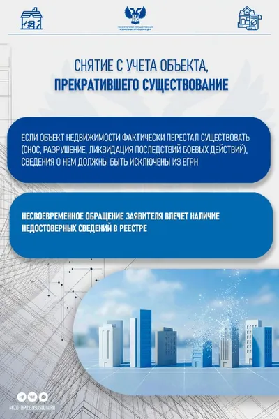 Снятие с учета объекта недвижимости, прекратившего существование Объекты капитального строительства, утратившие свои свойства в результате естественного износа, природного катаклизма, пожара или боев