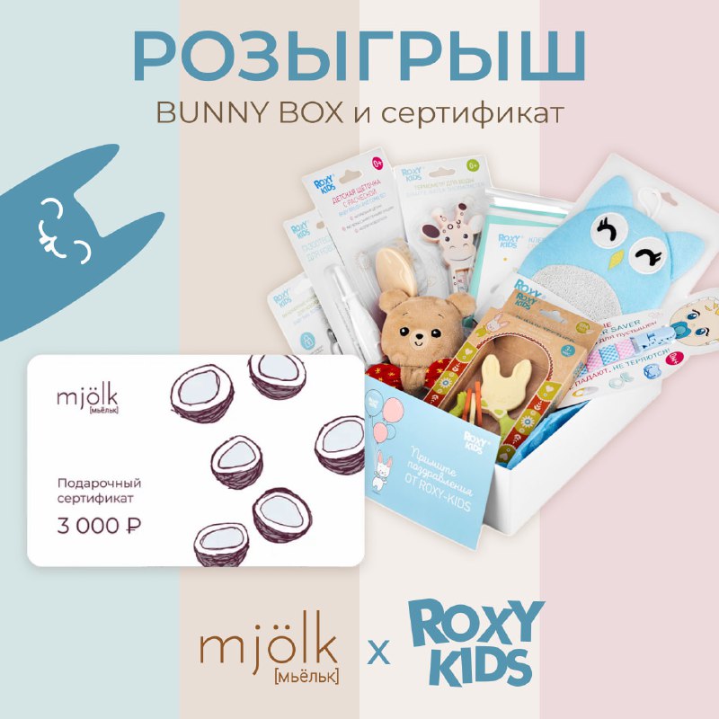 Розыгрыш от ROXY-KIDS и Mjölk🌱 Мы снова объединились, чтобы порадовать вас классными призами для малышей 💝 ✨Легендарный подарочный набор для новорожденного Bunny Box от ROXY-KIDS ✨Сертификат на 30