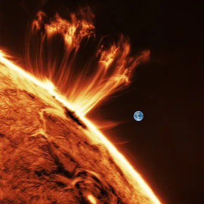 Последствия солнечной вспышки класса X Земля представлена для масштаба