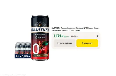 🧃 Балтика №0 Вишня Безалкогольное (24 шт. х 0,33 л) Старая цена — 2.000₽ Новая цена — 1.171₽ Товар по ссылке Цена товара может отличаться, размер скидки зависит от вашего аккаунта 👉 Маркет. Подп