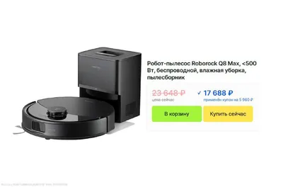 🥳 Робот пылесос с лидаром и влажной уборкой Roborock Q8 Max Pro Plus подъём на ковры 8 мм l 10000 Па l 5200 мАч l плановая уборка Старая цена — 34.150₽ Новая цена — 17.688₽ (с купоном продавца) Т