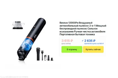 🤵♂️ Беспроводной автомобильный пылесос на 12000 Па Baseus A5 Air Car Vacuum Cleaner Старая цена — 5.230₽ Новая цена — 2.635₽ (с купоном продавца) Товар по ссылке 👉 Маркет. Подписаться