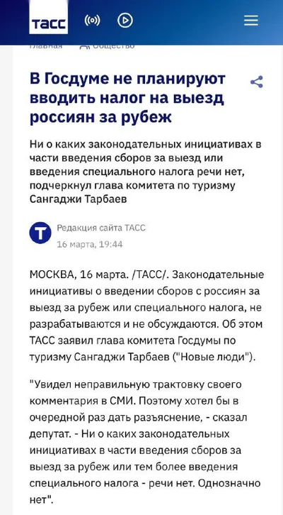 Друзья, сейчас по телеграм-каналам разгоняется фейк, якобы мы хотим ввести налог на выезд заграницу🤦🏼♀️ Просьба не вестись и перешлите, пожалуйста, друзьям❤️