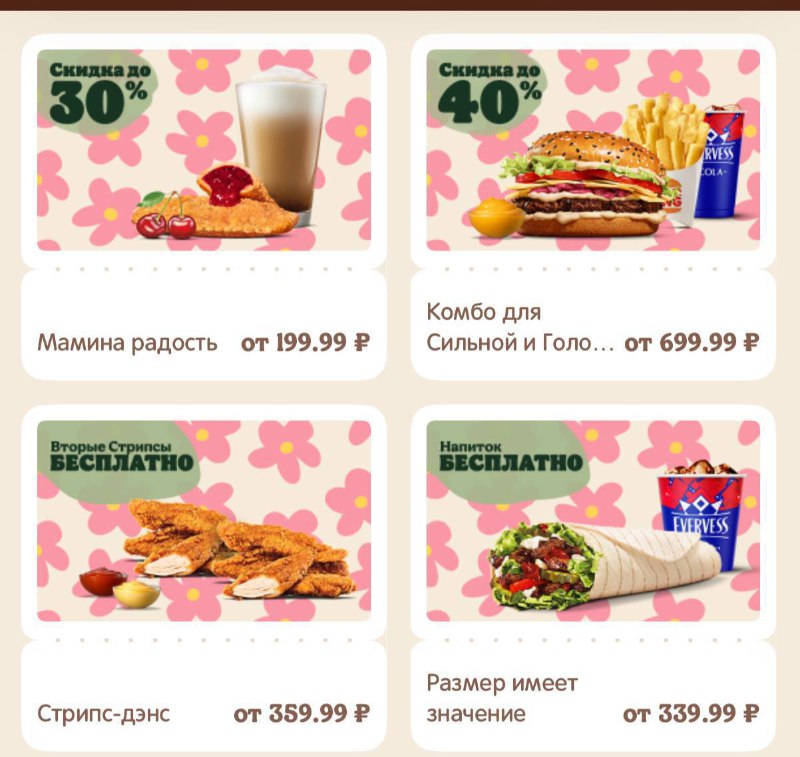 В Бургер Кинг появилось комбо в честь 8 марта • Мамина радость • Комбо для сильной и голодной • Стрипс-дэнс • Размер имеет значение 🎁 Больше халявы в боте
