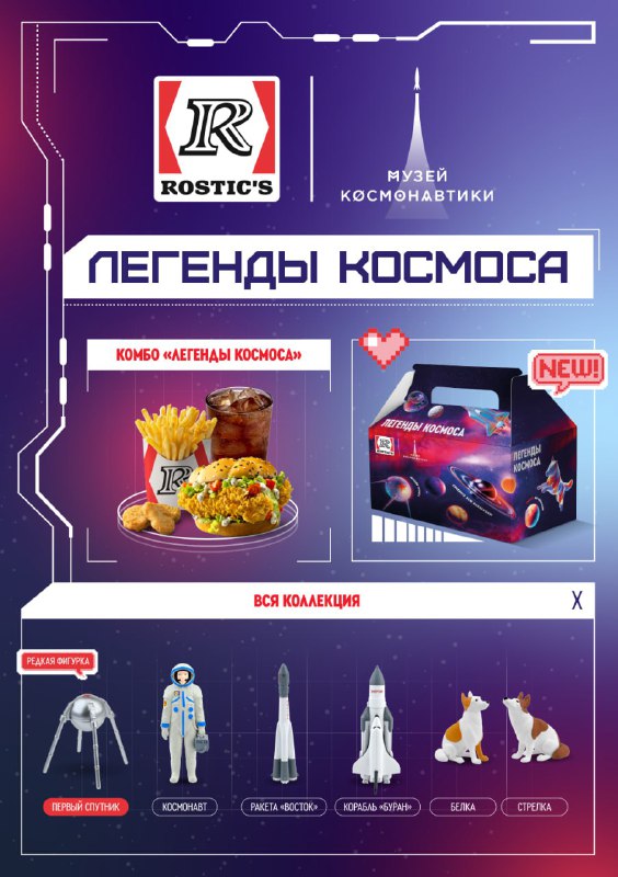 Rostic’s и Музей космонавтики запустили комбо с Игрушками-символами российской космонавтики 🎁 Больше халявы в боте