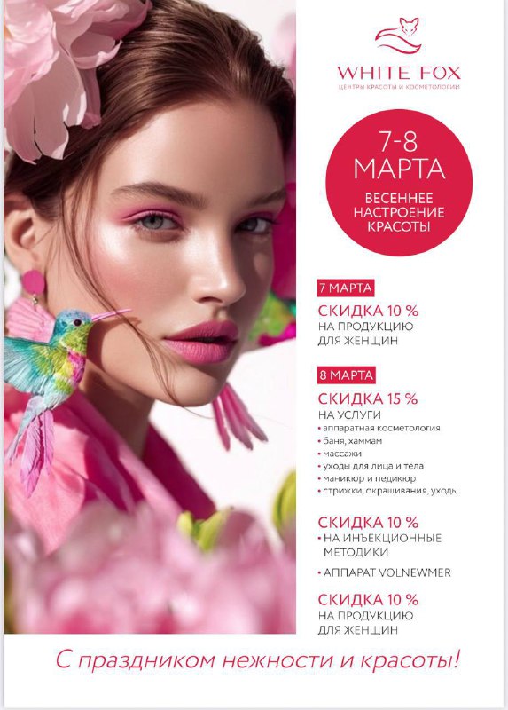 Прекрасная новость! 🌷7-8 марта сеть центров красоты и косметологии WHITE FOX подготовили особые предложения - скидки 10-15%! 🌹И только для вас — закрытая неделя эксклюзивных бьюти-услуг - персо
