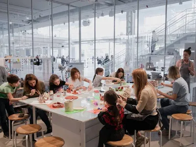 🎨 Бесплатная творческая мастерская в ГЭС-2 Мастерская «Ателье» разделена на четыре зоны: ткань, дерево, глина и бумага. Здесь можно создавать свои проекты бесплатно — материалы и оборудование уже на