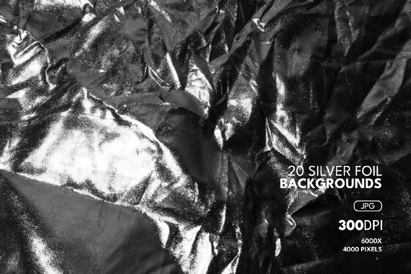 Silver Foil Background 03 20 фотографий серебряной фольги с бликами, складками и отражениями. Реальная металлическая поверхность в высоком разрешении. Используются в постерах, упаковке и дизайне про