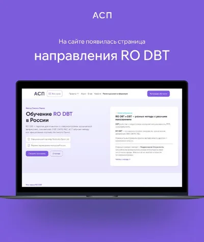 На сайте АСП появилась отдельная страница, посвященная направлению RO DBT А это значит, что: 📍 теперь вам не нужно идти в Гугл и узнавать, что такое RO DBT — мы подробно описали это на сайте 📍 н
