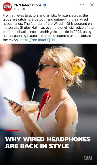 Про наушники. Мне тут надо было заказать себе наушники, и я поняла, что как будто бы хочу купить проводные. Почему? Да потому что они не потеряются и не сядут! Потом наткнулась на статью в CNN и по