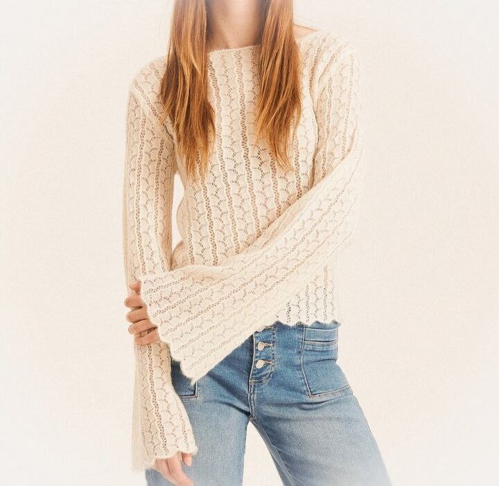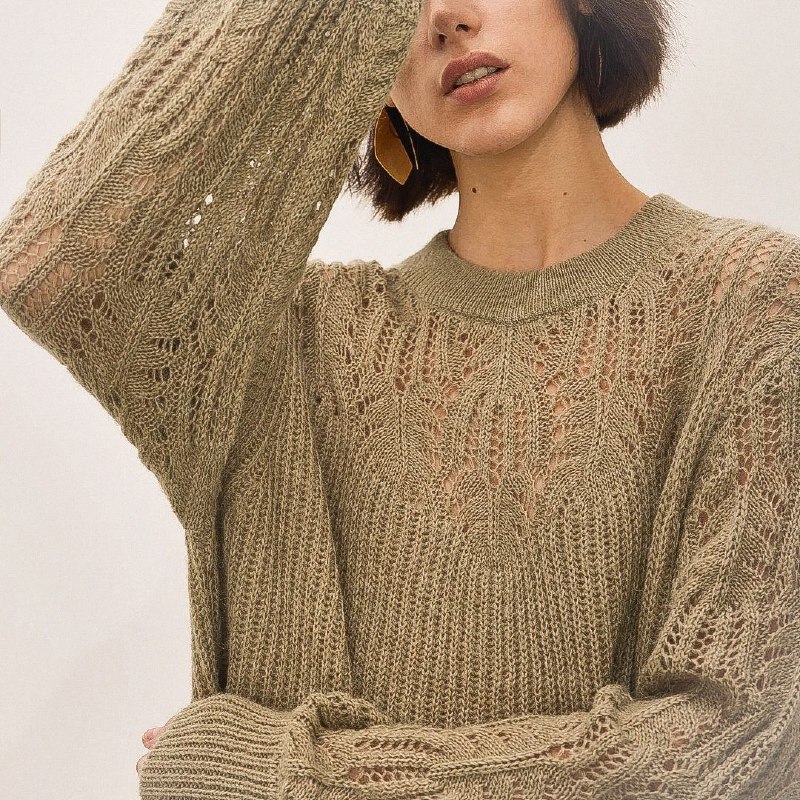 Ажурный пуловер с круглой плотной кокеткой