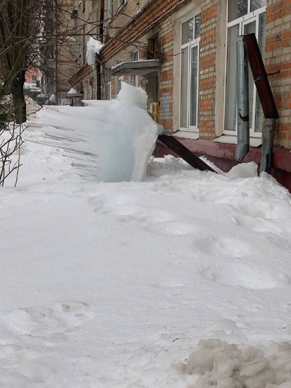 👀 На Ворошилова с крыши рухнула огромная глыба льда у подъезда, зацепив с собой водосточную трубу ПОДПИСАТЬСЯ «МОЙ СЕРПУХОВ»