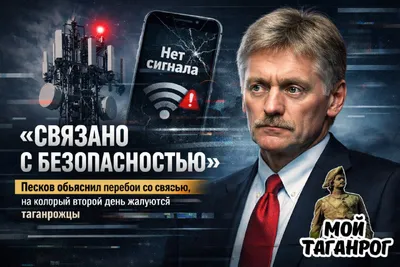 «Связано с безопасностью»: Песков объяснил перебои со связью, на которые второй день жалуются таганрожцы Официальный представитель Кремля Дмитрий Песков прокомментировал ситуацию с массовыми отключен