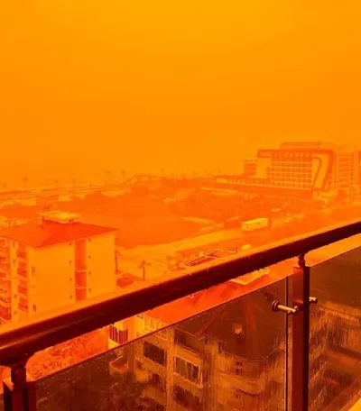 ⚡️🇹🇷 Песчаная буря окрасила Анталью в оранжевые тона Курортная Анталья оказалась во власти мощной песчаной бури — город накрыло густым облаком пыли, из-за чего улицы и небо приобрели оранжево-красн