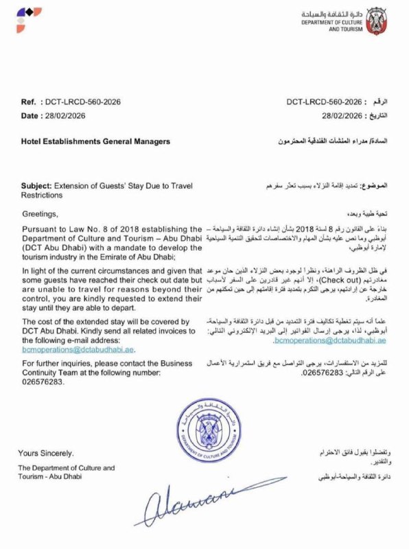 Абу-Даби продлевает проживание гостей и приостанавливает биржи В Абу-Даби обязали все отели продлить проживание гостей, которые не могут выехать из-за текущей ситуации. Расходы покроет Департамент ку