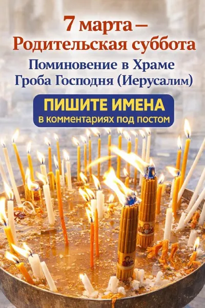 7 марта — Родительская суббота. Помянут ваших усопших в Храме Гроба Господня (Иерусалим) 🙏 В этот день Церковь особенно молится об усопших — о тех, кого мы любим и помним. Подать записку об упокоени