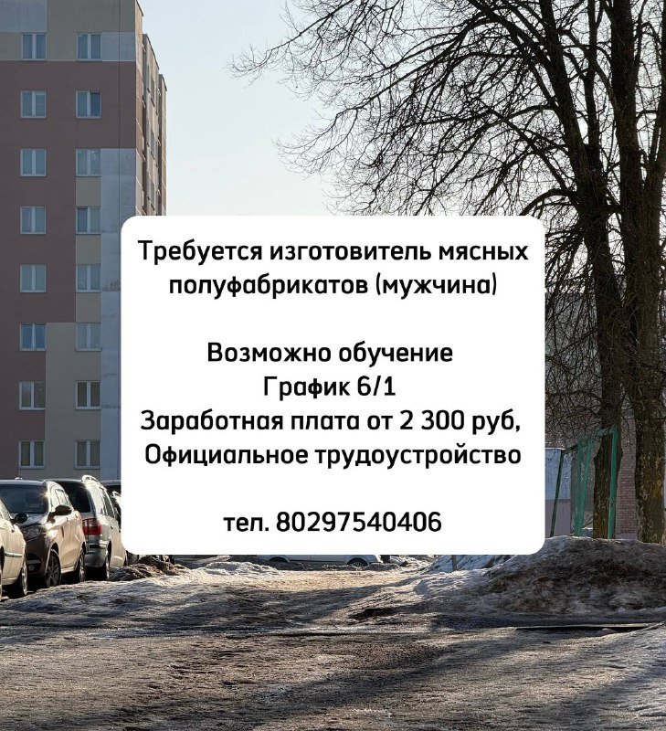 ⚡️Требуется изготовитель мясных полуфабрикатов (мужчина) 🟢Возможно обучение ⚪️График 6/1 🟢Заработная плата от 2 300 руб, ⚪️Официальное трудоустройство 📞 тел. 8029 7540406