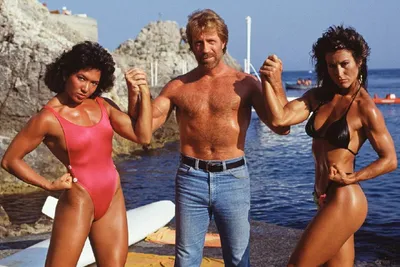 Чак Норрис со звездами фильма «Качая железо» в Таормине, на Сицилии, 1985 г. История 20 века