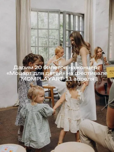 Дарим 20 билетов на концерт Моцарта для детей🌷 который пройдёт 11 апреля в рамках фестиваля локальных брендов MOMPLAYART. Условия просты: - Выкладывайте пост у себя на канале с анонсом маркета. -