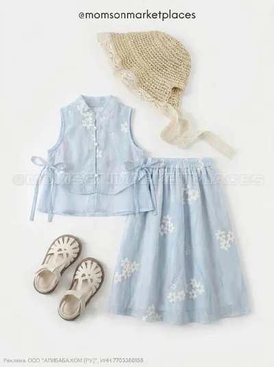 Образ для девочки с Ali 🌷🧋 💙 размеры 80-140 Костюм 〰️ 1490₽ Сандали 〰️ 930₽ Панама 〰️ 540₽ #образ #aliexpress #одежда #п261 Мамы на маркетплейсах 🐰 Канал в MAX – дублирую туда посты, если в