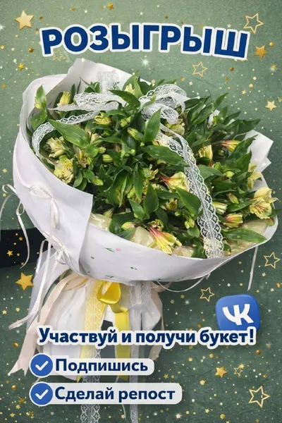 🎉 РОЗЫГРЫШ! 🎉 Разыгрываем нежный приз — букет из альстромерий 💐 Чтобы принять участие: ✔ Подпишись на нашу группу ✔ Сделай репост этой записи ✔ Отметь в комментариях 3 друзей 📅 Итоги розыгрыша: