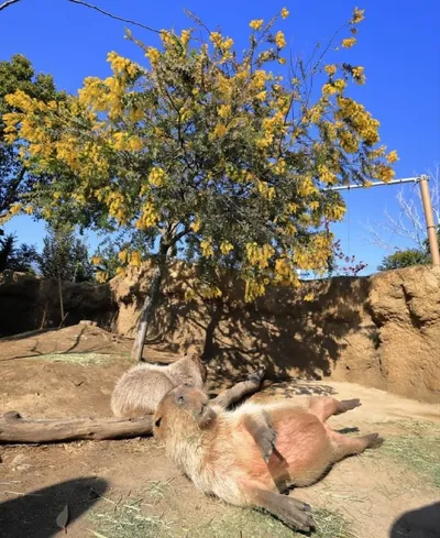 Доброе утро от капибар, которые кайфуют на весеннем солнышке 🦋