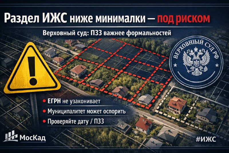 Вот это уже не «страшилка из чата», а реальный сигнал рынку. ВС развернул дело по схеме, когда участок под ИЖС (около 6 соток) нарезали на более мелкие и поставили на учёт, хотя по ПЗЗ / градрегламен