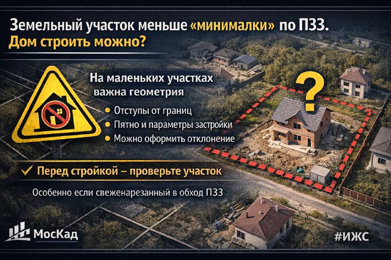 Земельный участок меньше “минималки” по ПЗЗ. Дом строить можно? Чаще всего - да. Но не “как получится”. Суть простая: минимальный размер участка - это правило для образования новых участков. А если