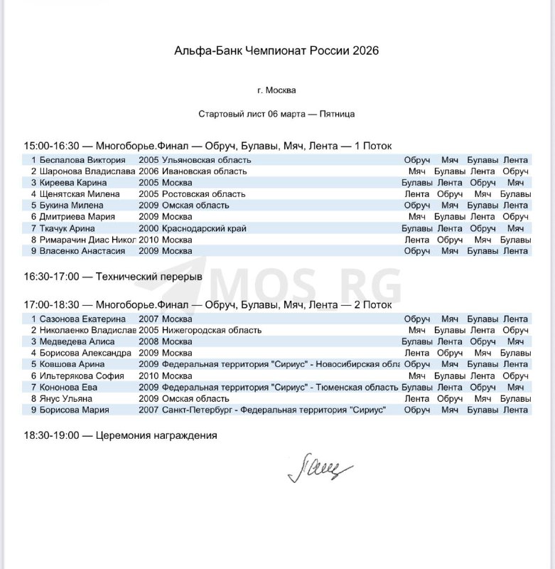 Стартовый протокол финала многоборья 06.03.26📃 Трансляция ВК Трансляция Матч 14:40 Трансляция Матч 16:30