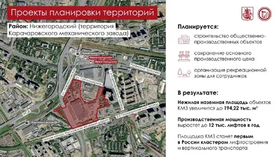 Утвердили три проекта планировки территорий в разных частях города 📍 В Нижегородском районе создадим первый в России кластер лифтостроения и вертикального транспорта. Будет реорганизована территория