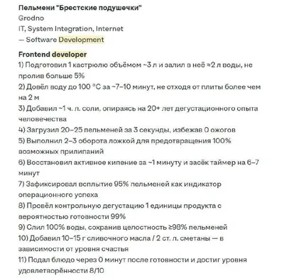 🥟Айтишник написал в резюме рецепт пельменей и получил приглашение на собеседование Парень оптимизировал его под алгоритмы нейросетей, и его зачёл ИИ-эйчар. Рекрутер начал собеседование с обсуждени