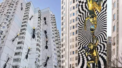 🖼 Нет, это не ИИ — просто фасады домов столице, которые стоит увидеть! В Одинцово существует уникальный музей граффити под открытым небом. В 2019 году здесь состоялся фестиваль, на котором художники