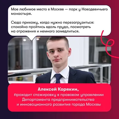 Попросили Алексея, стажера правового управления Департамента предпринимательства и инновационного развития поделиться любимым местом в Москве 🌿 Смотри карточки и сохраняй идею для своей следующей п