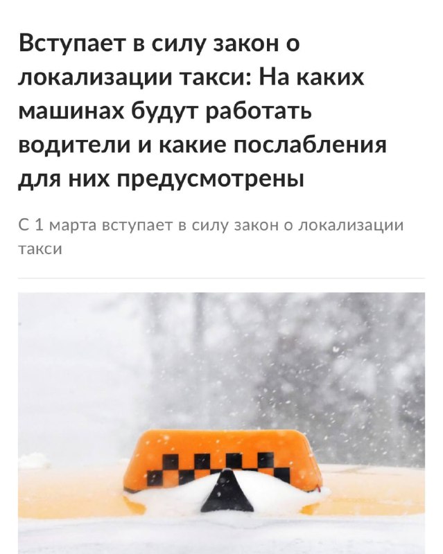 ❗️ Закон о локализации такси заработает СЕГОДНЯ — с 1 марта 2026 года в реестр такси смогут попасть только автомобили отечественной сборки. Сейчас в списке около 20 моделей: Lada, УАЗ, Sollers, Evolu