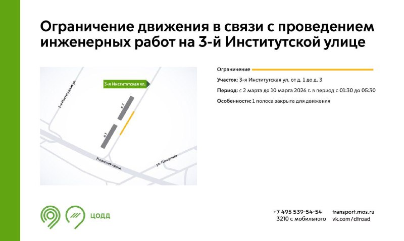 Движение на участке 3-й Институтской улицы будет ограничено 2–10 марта На участке ул. 3-я Институтская с 2 до 10 марта 2026 года будет недоступна для движения одна полоса. Об этом сообщила пресс-служб