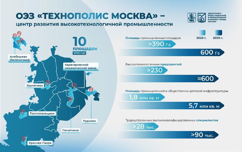 Увеличили количество технопарков и якорных резидентов ✔️ Статус технопарка получили площадки "Московский завод полиметаллов" и "Ренова Лаб". 🔸 Новый технопарк "Московский завод полиметаллов" нахо