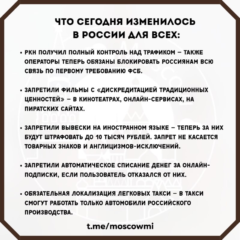 ❗️ Сегодня в России в силу вступил ряд законов, которые коснутся всех без исключения.