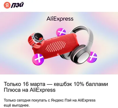 💳 🎒 Яндекс Пэй только сегодня 16.03 даёт кэшбэк 10% за покупки на AliExpress (там старт очередной распродажи). Ограничения: сумма покупки от 4000₽, максимальный кэшбэк - 800 баллов Плюса.
