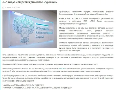 СДМ банк по претензии клиента на невозможность пополнения вклада прислал ему бредовую отписку, то есть банк всерьёз считает что не нарушает договора вклада. Конченные