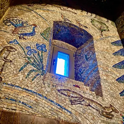 Место, которое не попало в мартовский маршрут, потому не всегда доступно. Но оно великолепно. Стены здесь аппетитные, как козинак — такова плотность фактуры. Всё–всё покрыто мелкими камушками, а жел
