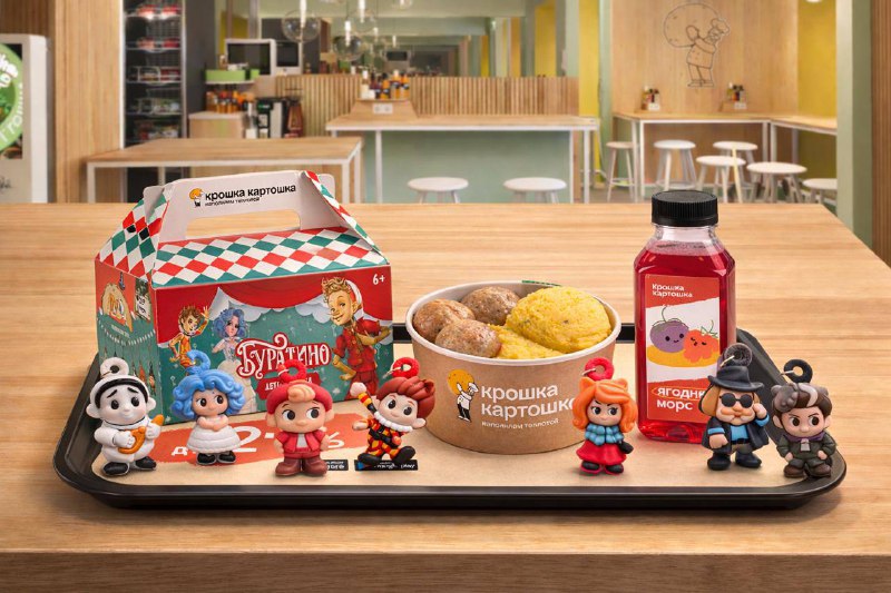 🤩 Крошка Картошка сегодня впервые выпустила детский обед с игрушкой В наборе: печёный мэш, фрикадельки из индейки, ягодный морс и брелок с одним из героев фильма «Буратино». В коллекции – 8 персонаж