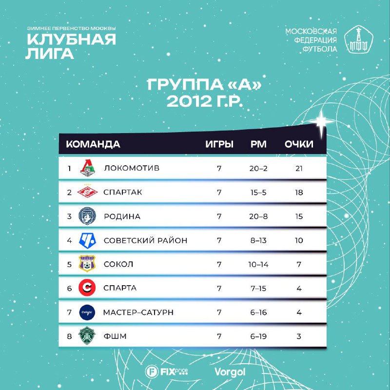 ✨ Клубная Лига | Зимнее Первенство Москвы | 2012 г.р. 📈 «Бело-голубые» занимают первую строчку группы «Б» и в решающей встрече турнира сыграют с «красно-зелёными». 😀 @mosff1910