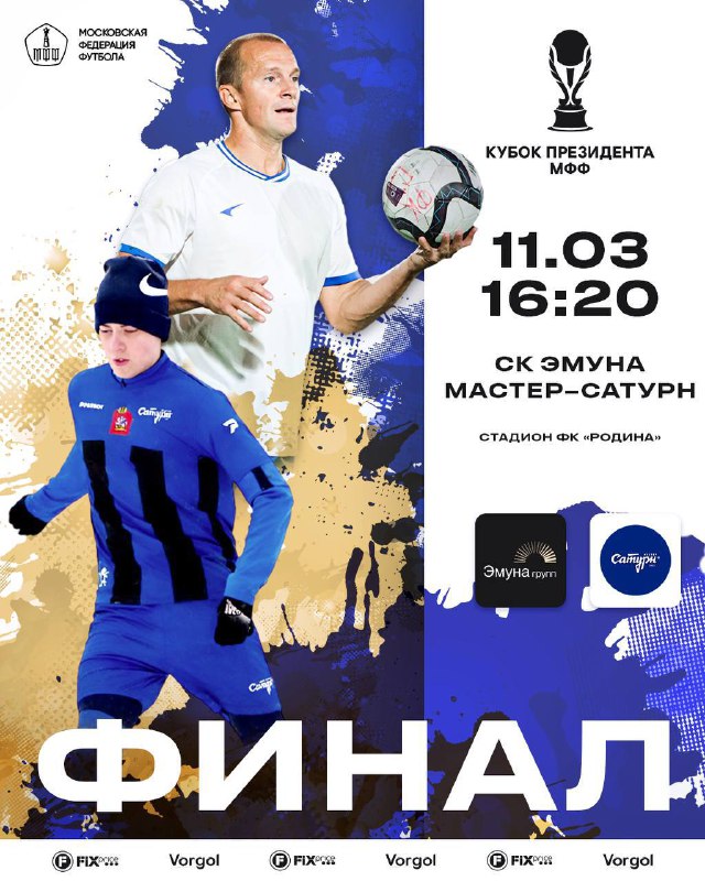 💥 Финал Кубка Президента МФФ уже в эту среду! СК «Эмуна» 🆚 «Мастер-Сатурн» 😊 Кубок Президента МФФ 2026 📍 Стадион ФК «Родина» 🕓 Начинаем в 16:20 Путёвку в решающий матч турнира оба коллектива